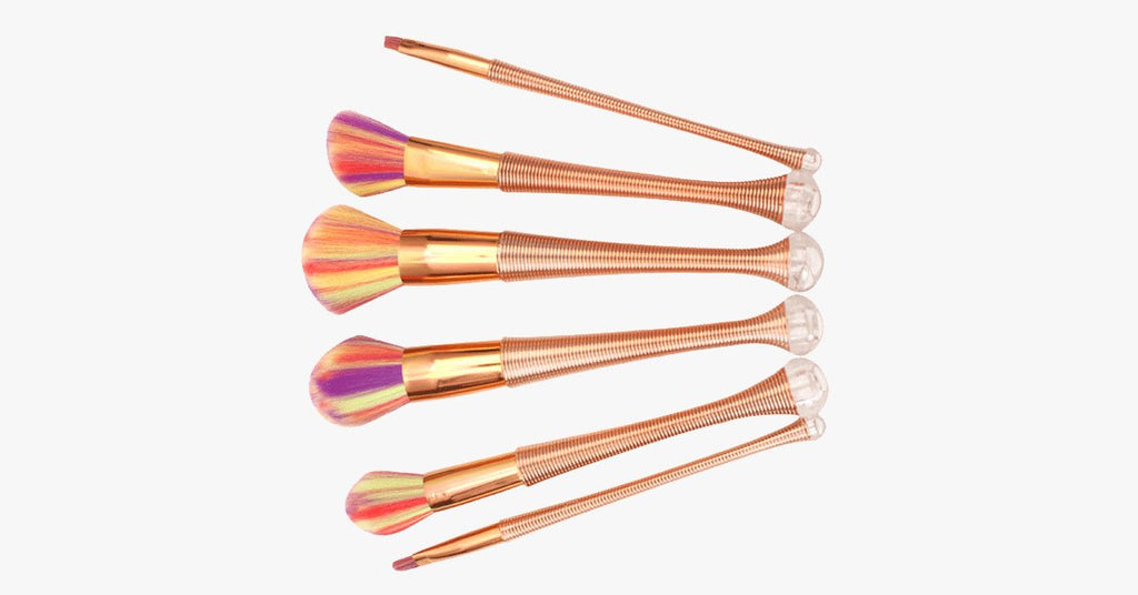 Rose Gold Pearl Brush Set is fun & adventurous. It features 6 essential brushes to complete any simple makeup look. The rose gold and clear pearl detail makes these brushes beautiful and perfect to display on any vanity.