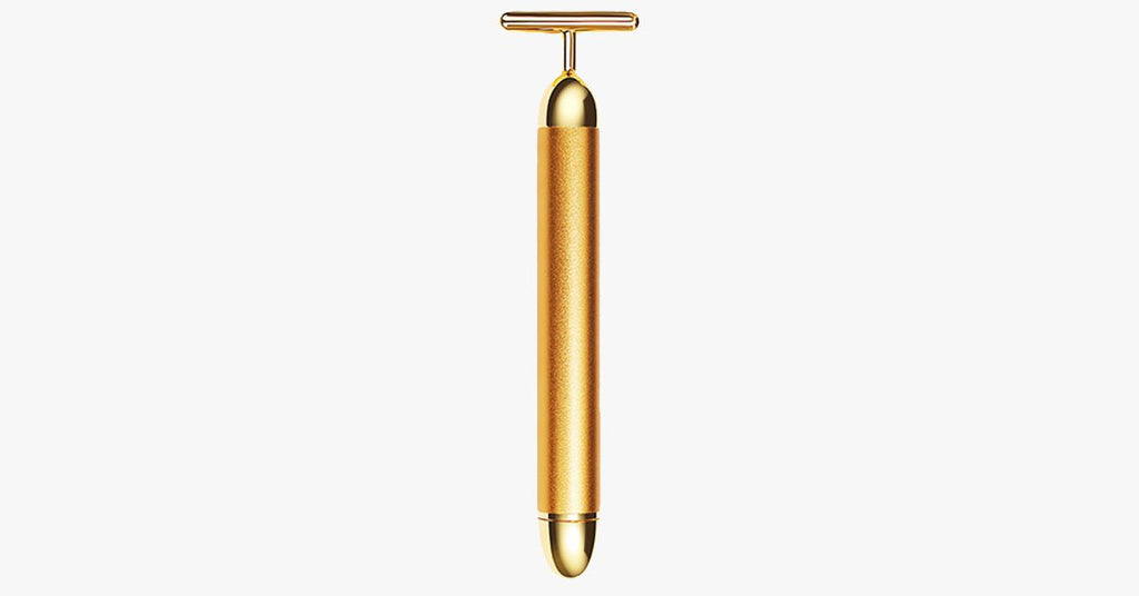 Roll away your wrinkles with the Slimming Face 24K Gold Plated Massager! Dark under eye circles are reduced, and toxins are removed more efficiently. This 24K Gold Plated Massager invigorates, calms and awakens the tissue by stimulating your lymphatic system and allowing it to work more efficiently. This natural stone helps tighten your skin. The double-ended rollers allow you to cover both broad and fine detail areas effectively.