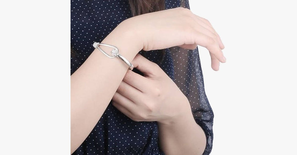 This elegant Crystal Rose Bangle will add the perfect touch of sparkle and sophistication to any of your formal outfits. Made with a stylish hoop clasp for a secure fit, and detailed with a sparkling rose charm with crystal detailing, this beautiful piece is a must-have for anyone's personal jewelry collection. Great to share as a gift on any special occasion.