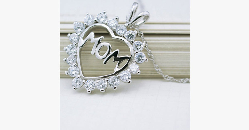 This mothers pendant is the perfect mothers day gift. This mom heart pendant is silver plated with CZs and MOM written in the center with a unique heart shaped bail. This silver mothers day heart pendant will match perfectly with other heart jewelry. Show your mother how much you care about her when you give her this silver plated heart pendant. Jewelry for mom is not always easy to find but this silver plated heart pendant is the perfect choice.