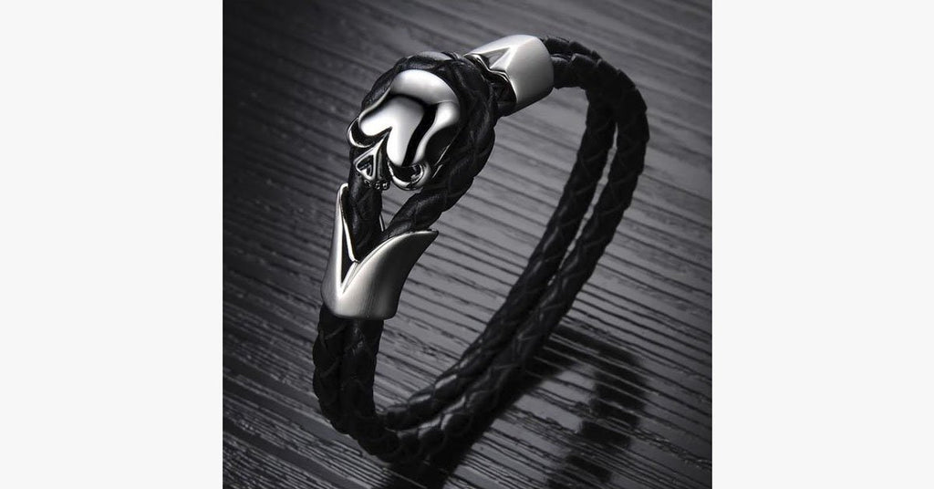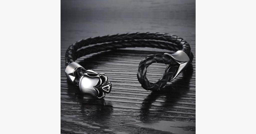 This Dirty Skull Black Leather Men's Bracelet is a modern piece for any day. The simple but detailed design of the skull is a perfect statement for any skull lover! Comfortable and sleek with it's black leather braided style, you will be sure to wear this everyday!