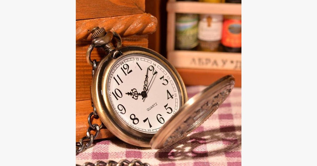 A Half Hunter Pocket Watch is a classic style that includes a pocket watch cover that allows a glace at the face of the watch without having to remove the cover.  This design was created to save the trouble of having to open a pocket watch to tell the time.  The Black Vine Pocket Watch also includes its own chain for an elegant finish that would add true sophistication to any man's wardrobe.
