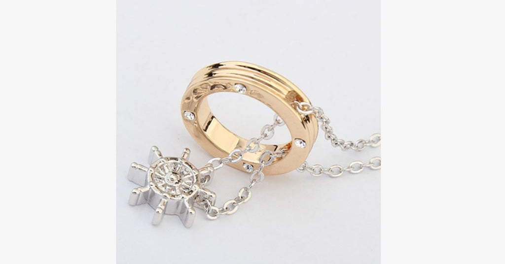 Be your own voyager! Whether you are someone who revels in the journey of life, or are a world traveler, or both! Sport this unique two-toned (gold & silver) charm necklace expressing your inner explorer. This pretty silver steer sits beautifully at the center of a gold ring marked with silver jewels glimmering in the light. Can you feel the wanderlust too?