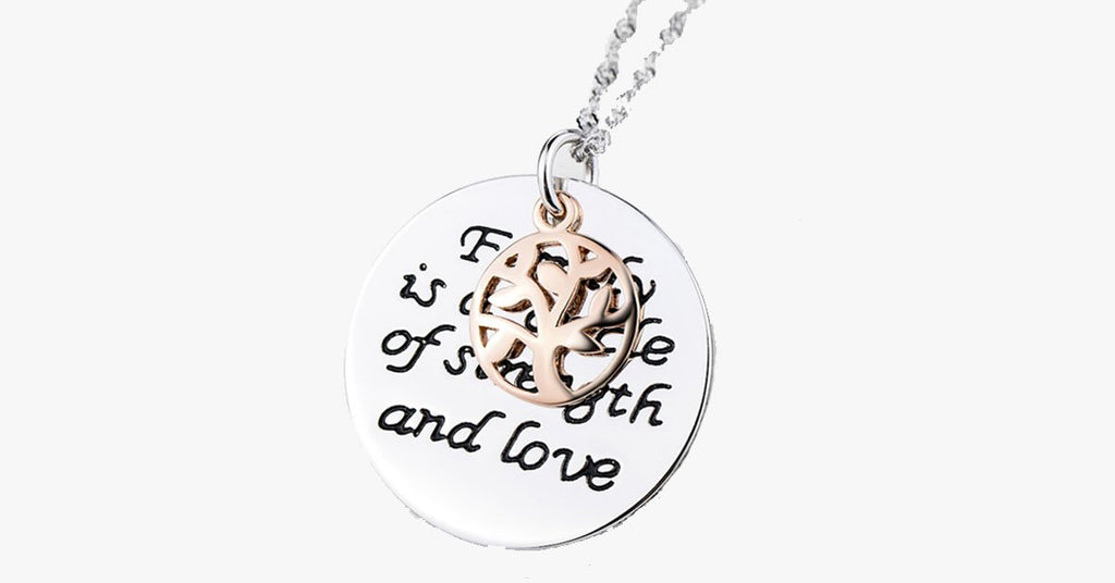 This elegant charm pendant is a beautiful way to express the love and appreciation you have for your family. Designed with rose gold and silver metal finish, this versatile necklace is a great piece to style and wear with any outfit! Especially hand stamped with an engraving that says "Family is a circle of strength and love", this silver plated pendant makes the perfect gift!