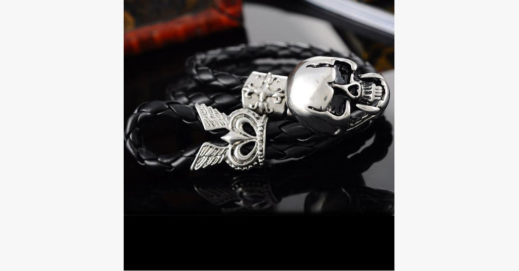 This classic Stainless Steel Men's Skull Bracelet is a modern piece that's great to wear for any day. Bracelet measures 8.5 inches in length features a fold over clasp.