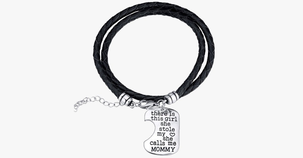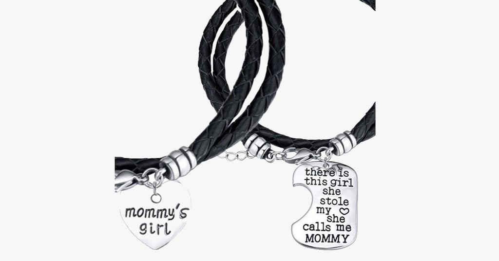 Are you the missing link in your daughter's heart? If you love your daughter as much as we love ours, let her know with this special charm bracelet set! Its custom engraving "There is this girl she stole my heart she calls me mommy" and matching heart to interlock with "Mommy's Girl" engraved will have your daughter boasting to all her friends. She will never want leave home without it.