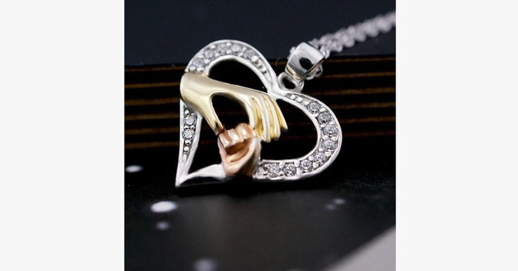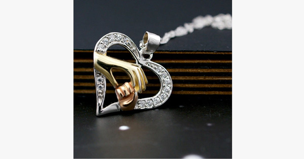 Mother's Hand Pedant is made from 18K Gold Plated on silver plated metal. Handmade with Austrian crystals around the heart.