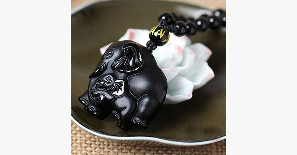 Natural Obsidian Elephant Necklace