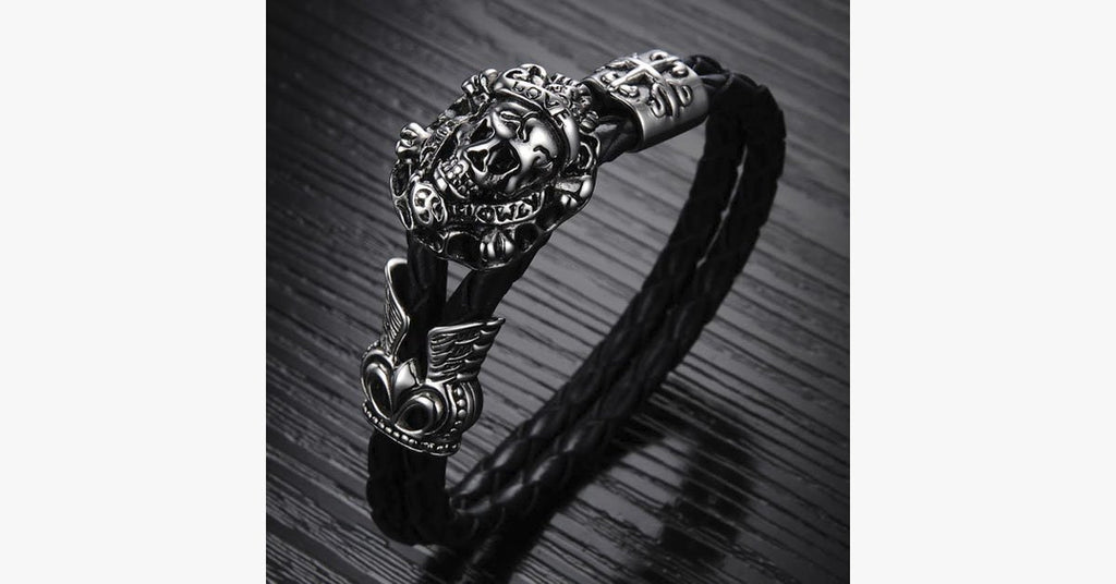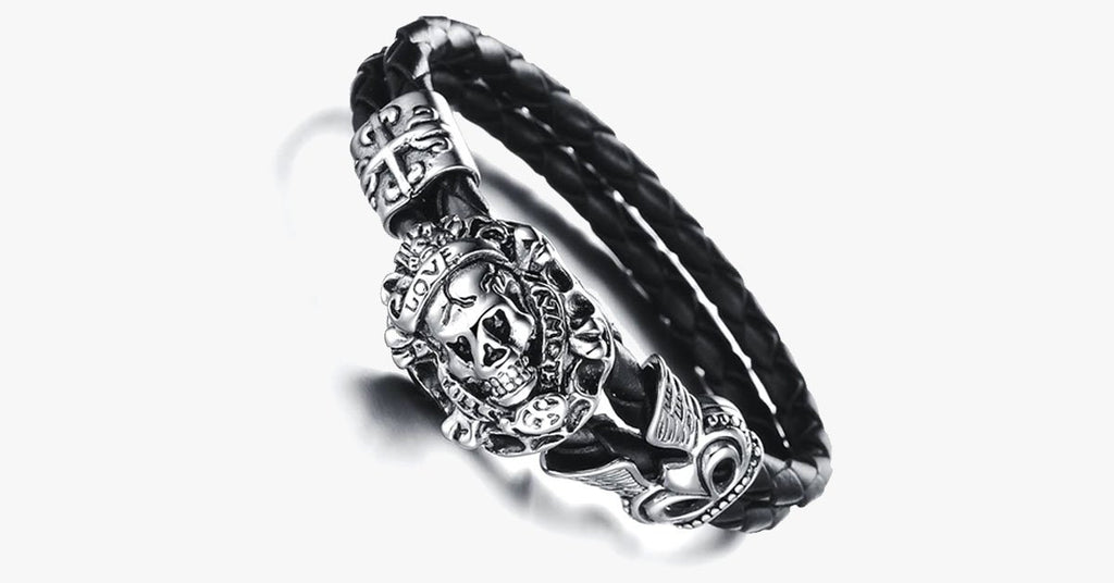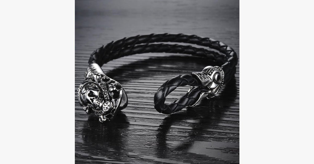 This classic Pirate Skull Men's Bracelet is a modern piece for any day. Bracelet measures 8.5 inches in length features a fold over clasp.