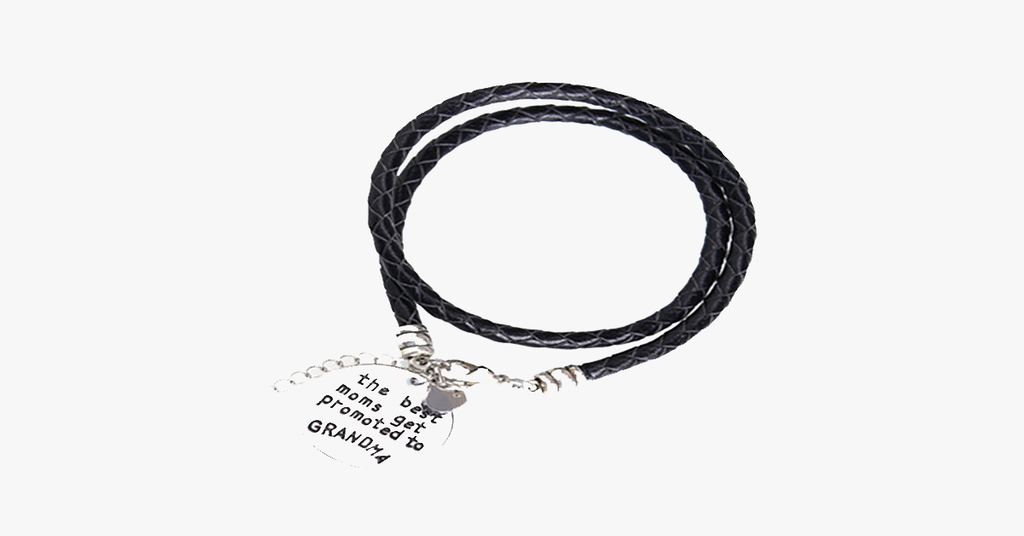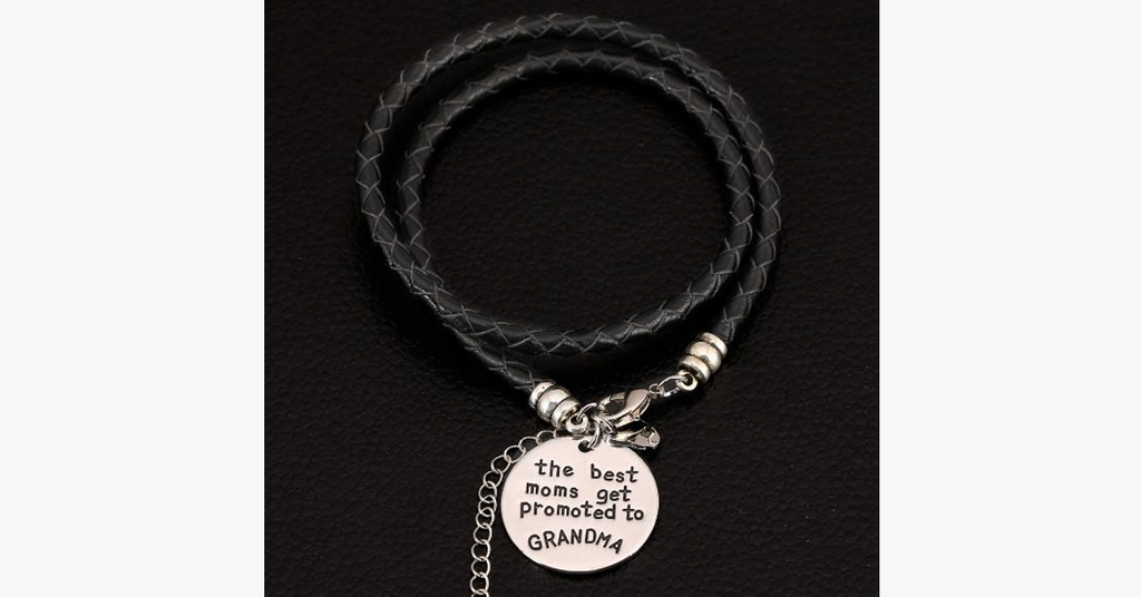 This bracelet is the perfect way to show her just how much you love and care. Each carefully made with Vegan Leather that gracefully wraps around her wrist. The letters are all carefully hand stamped one at a time, which lends itself to a unique and splendid handmade look for each bracelet. Engraved with the message, ' The Best Moms Get Promoted To Grandma'.