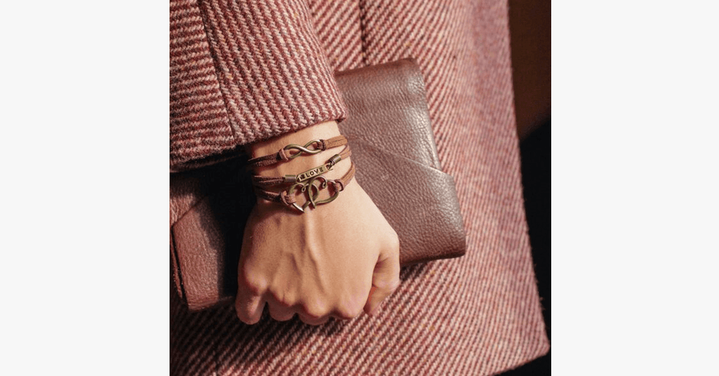 This Vintage Double Heart Bracelet is made with brown vegan leather with double hearts, love and infinity charms. Its vintage inspired look, gives it a great feel to match as the perfect accessory to any casual outfit.