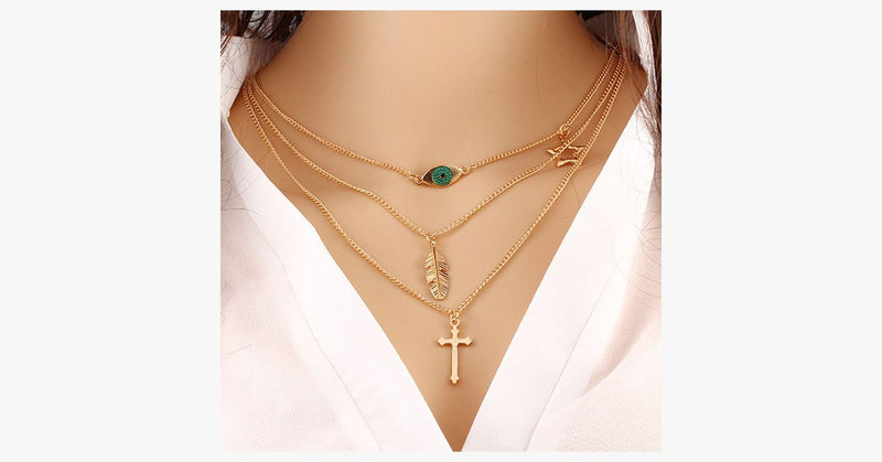 Eye Leaf Cross Necklace