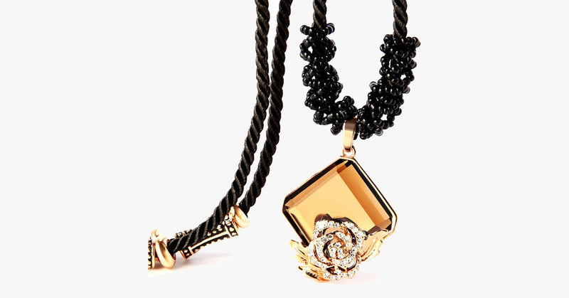 Rose Crystal Black Rope Nec...