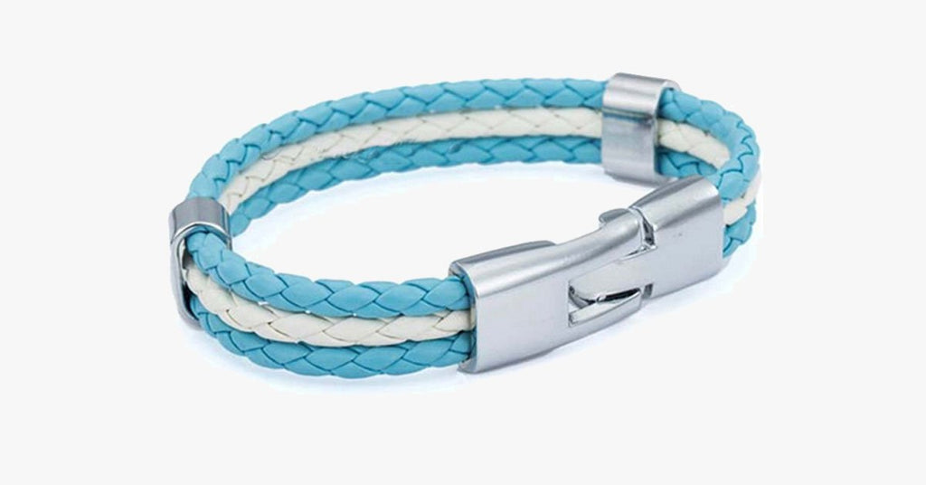 This eye-catching leather bracelet features quality leather in blue and white representing the colors of the flag of Argentina. If you are a Olympic Games supporter for Argentina then this bracelet is for you! Order now for you and your friends and support your country this summer.