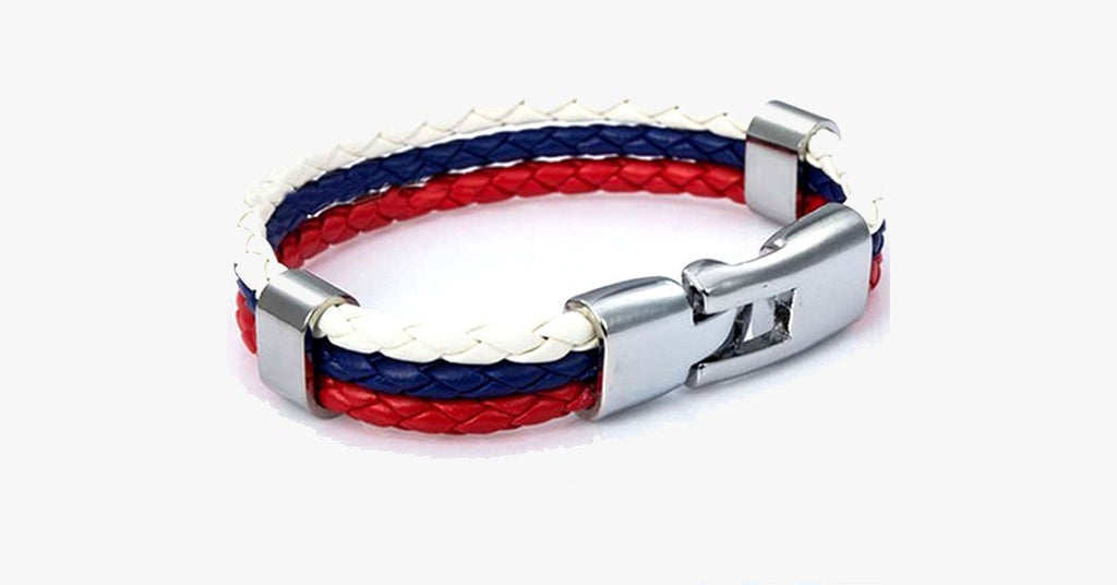 This eye-catching leather bracelet features quality leather in red, white and blue representing the colors of the flag of the France. If you are a UEFA EURO2016 or Olympic Games supporter for France then this bracelet is for you! Order now for you and your friends and support your country this summer.