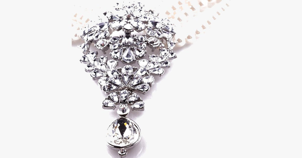 This royal necklace will give you a queen look. Its middle rhinestone locket is very shiney. The perfect jewelry piece of any occasion.