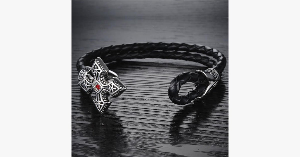This classic Silver on Black men's stainless steel bracelet is a modern piece for any day. Bracelet measures 8.5 inches in length features a fold over clasp.