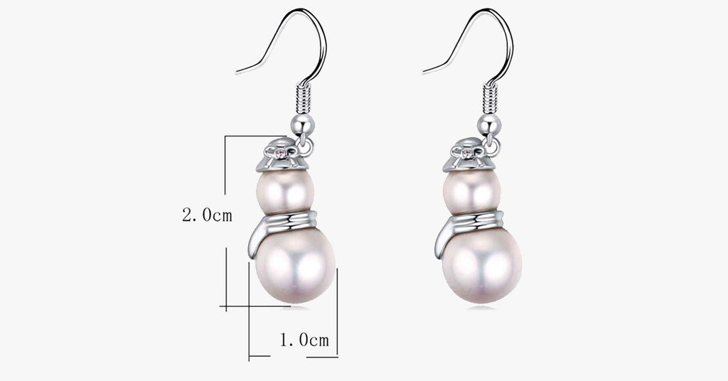 Give the perfect gift this holiday season! These earrings are sure to spread holiday cheer, with a playful design and polished finish. A great accessory to wear with any formal or casual outfit. The snowman is made with two pearl beads, as white as snow, and detailed with a small silver top hat and scarf. A charming gift to share with anyone!