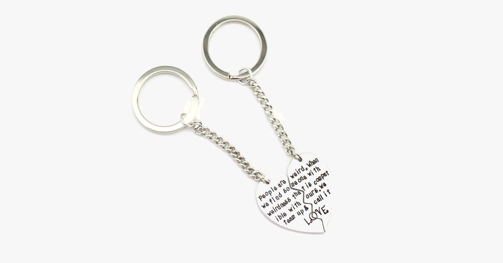 They say soulmates find one another in the same hiding place. The quote that assembles both halves of a heart to this key chain reveals just that! "People are weird, when we find someone with weirdness that is compatible with outs, we team up and call it love". Gift this lovely Soul-Mate Silver Key chain set to your special weird someone as a symbol of your love - they'll absolutely adore the sentiment!
