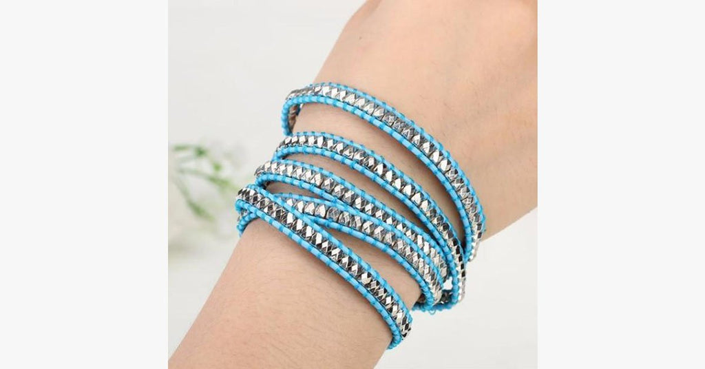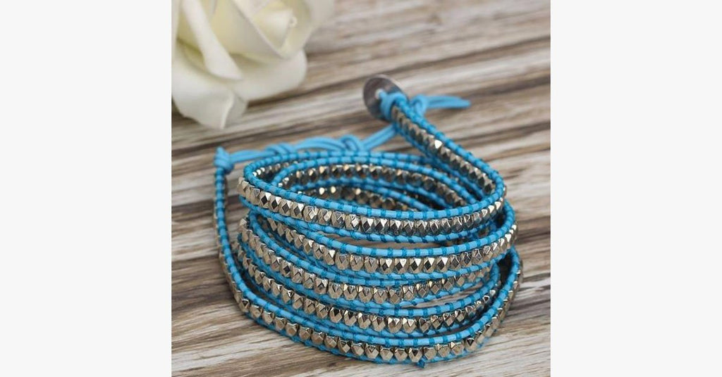 Hurry, before it is gone! Limited time remaining!Fast Delivery - Within 14-21 business days100% Money Back Guarantee Titanic Wrap Bracelet is made with round Hematite Beads and blue leather. Hematite is a grounding stone that is...