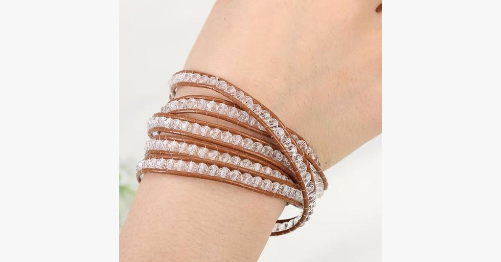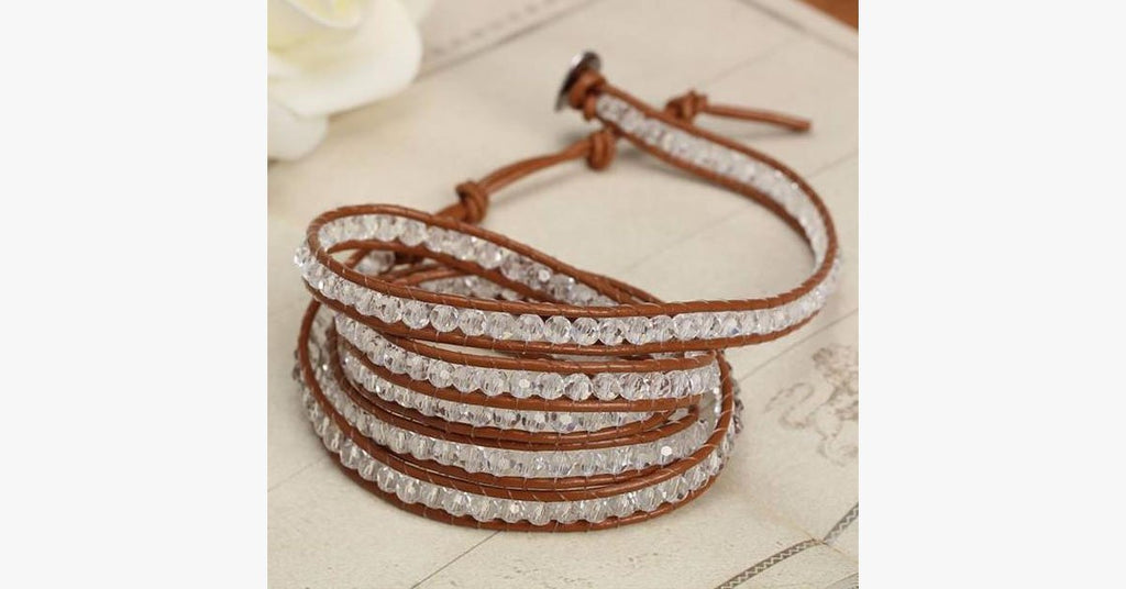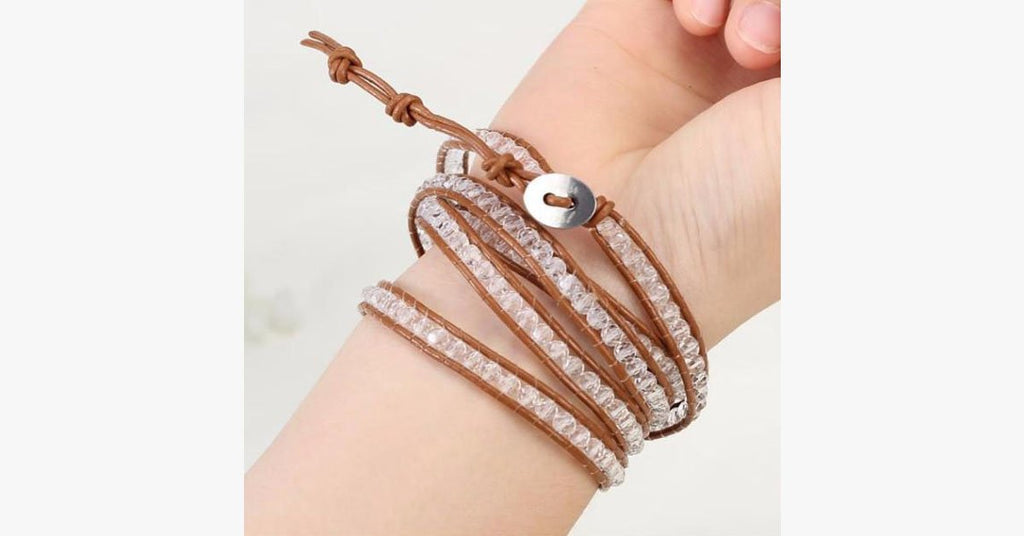 Hurry, before it is gone! Limited time remaining!Fast Delivery - Within 14-21 business days100% Money Back Guarantee Topaz Crystal Wrap Bracelet is made with breathtaking circular beads around wrapped light brown leather. This beautifully crafted bracelet...