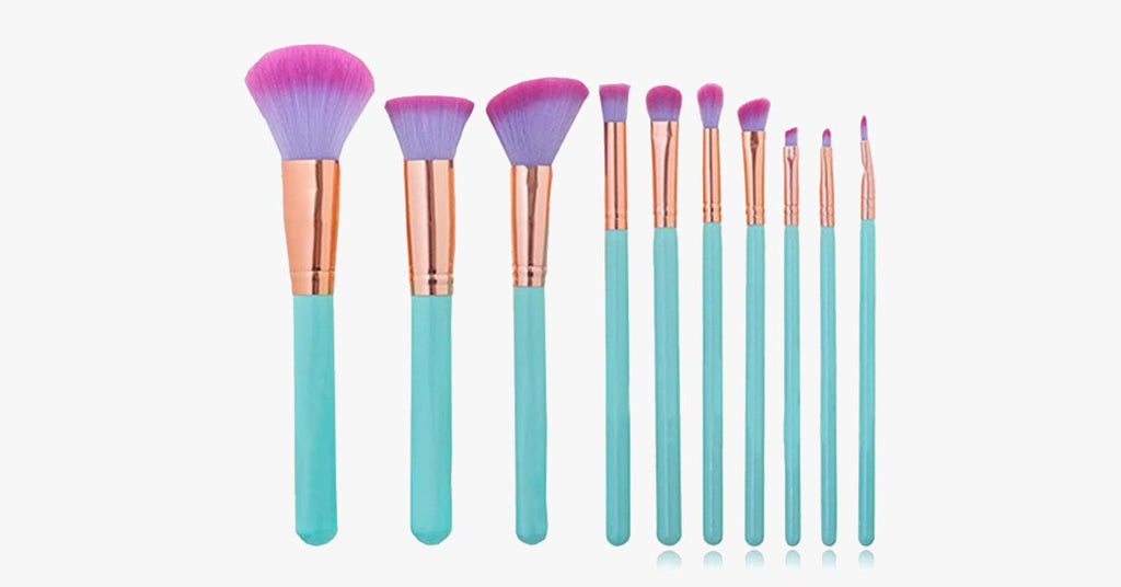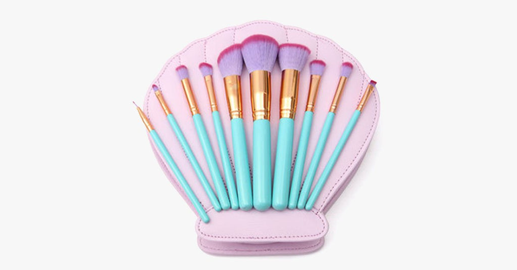 Bring some under the sea magic to your makeup vanity and collection with The Shell Brush Set. The high quality 10 piece brush set includes ultra-thin synthetic brush hairs that create flawless makeup application with each use. Includes 4 face brushes and 6 eye brushes perfect for both the amateur makeup lover and the professional artist.