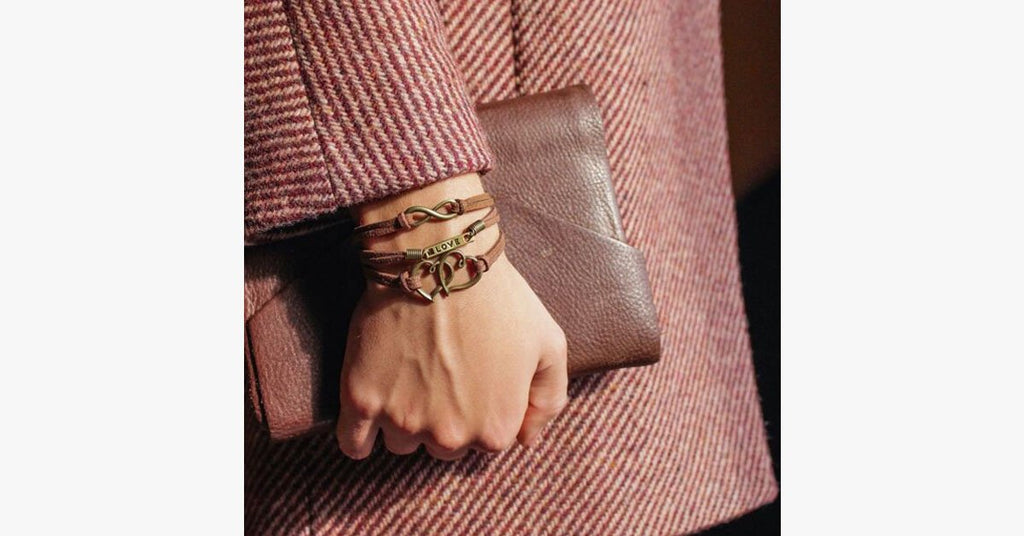 This Vintage Double Heart Bracelet is made with brown vegan leather with double hearts, love and infinity charms. Its vintage inspired look, gives it a great feel to match as the perfect accessory to any casual outfit.