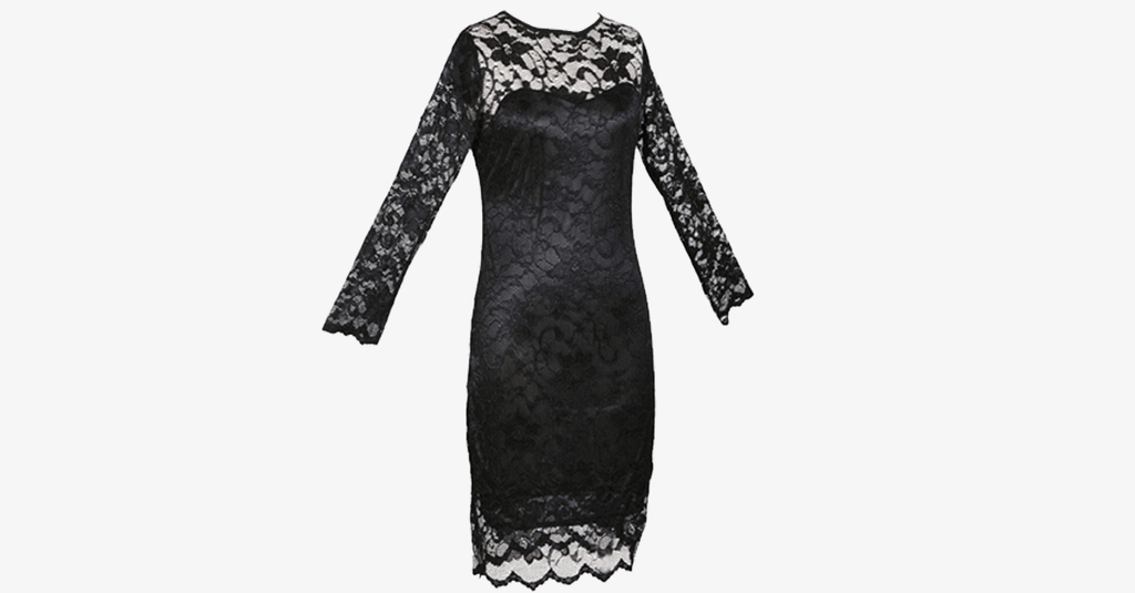 This lovely o-neck style evening dress is crafted from a stretch lace with underlay. Wear it with pumps or stilettos, and add a blazer or a pea coat if the weather gets too crazy!
